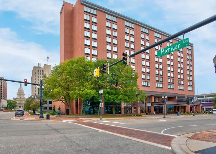 Adorned with a park and a stadium, a 14-minute walk from Michigan History Center, the 4-star Doubletree By Hilton Lansing Hotel includes 250 rooms. The hotel boasts a hot tub, a health club and spa therapy on site and guests can laze by a heated pool.